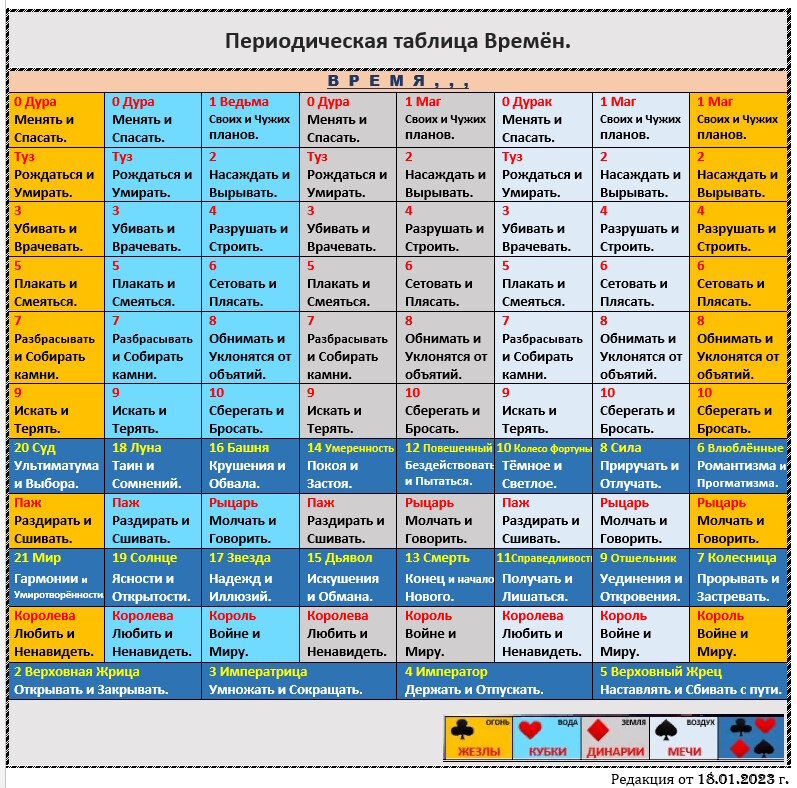 В основе Периодическая Таблица Времен с Арканами Таро.