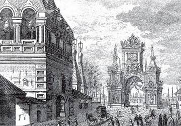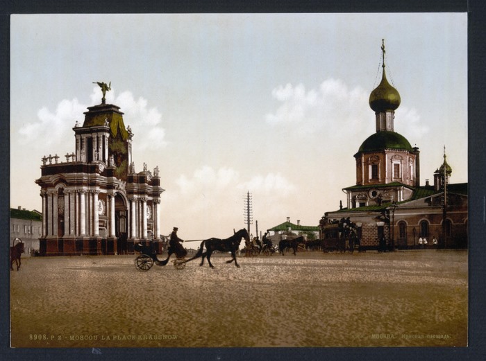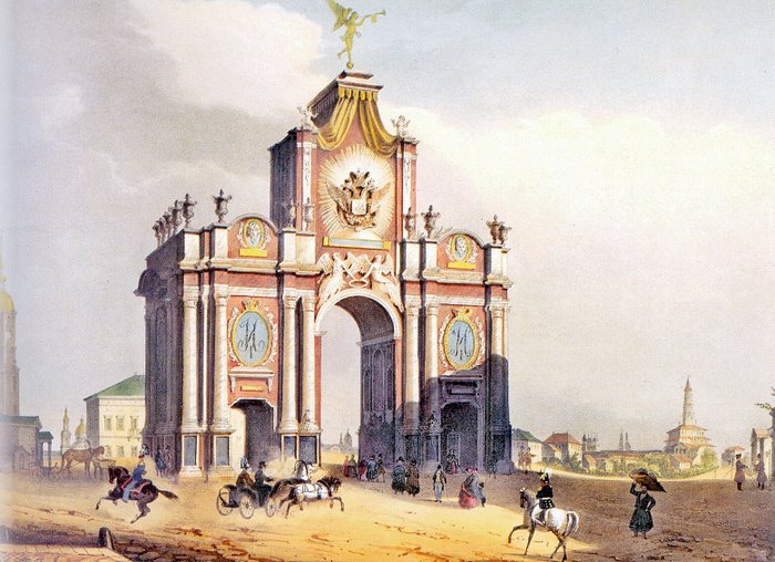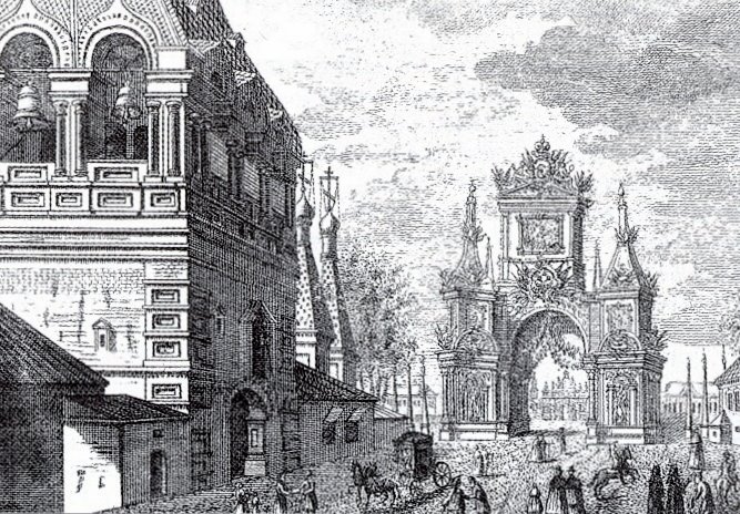 Вид из Кремля на Никольские триумфальные ворота (1702 - 1736 гг., архитекторы М.И.Чоглоков, М.Ремезов, Х.Конрад, Д.И.Иванов).