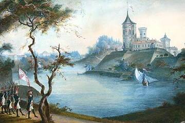 «Сдача Азовской крепости». Миниатюра из рукописи 1-й половины XVIII века «История Петра I», соч. П. Крекшина. Собрание А. Барятинского.