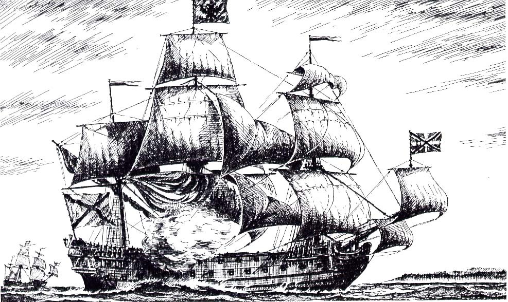 Не мог ли на линейном корабле "Пётр Первый" быть тот флаг, который поднял в Америке Джон Пол Джонс (Иван Павлович Джонес), только не такой, как он описывается в нынешней истории, а ещё и с добавлением к нему двух скрещённых красных полос?