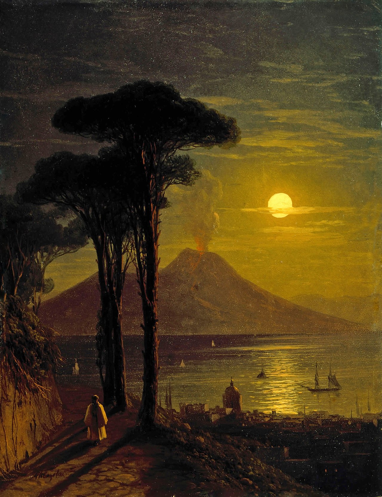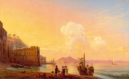 Предлагаю взглянуть, как изображён Везувий на картинах Айвазовского.
