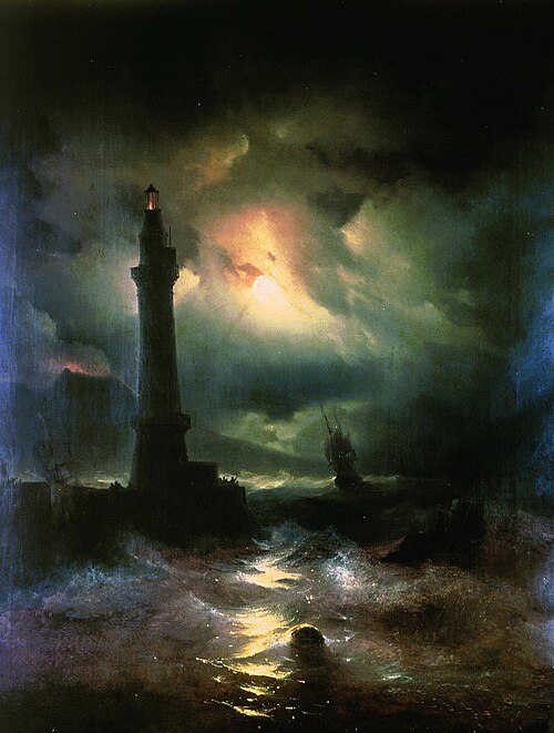 Морской пролив с маяком. 1841.