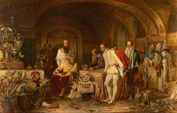 В руке Ермака тряпка, на портрете Аники Строганова флаг с белым полотнищем, он отдал свою дочь Вассу девственницей, есть и портрет Строганова, написал тот же художник Ермака Тимофеевича.»