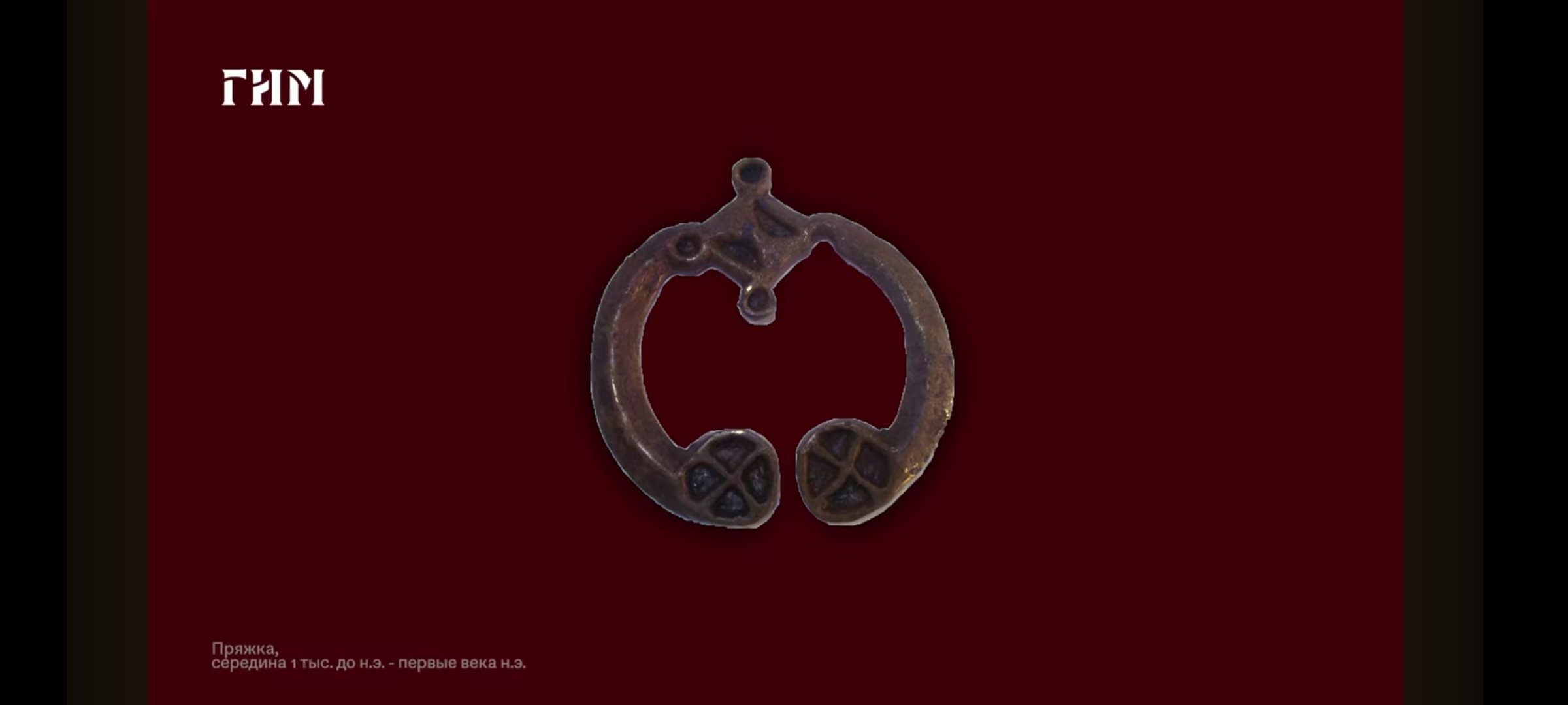 Вещи из клада (Рязано-окской культуры?). Дьяково городище. Московская область. Ок. (или с нашей эры до) 4-5 веков нашей эры. Рассматриваемый предмет — пряжка имеет датировку — середина первого тысячелетия — первые века нашей эры.