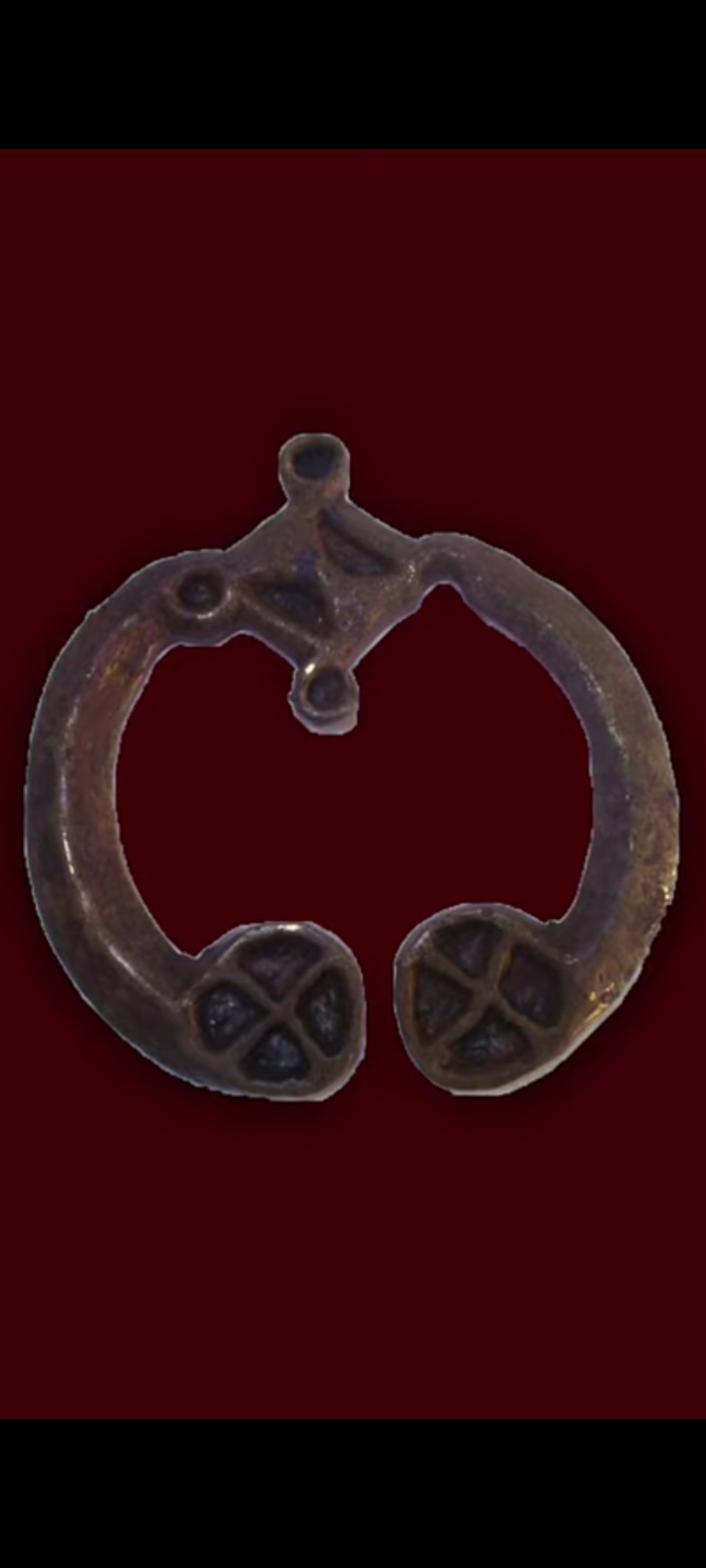 "Встречаются такие предметы в древностях Рязано-окской культуры, в древностях Мордвы, Мурома, вплоть до средневековья"..., если говорить о гривнах, а данный, предмет был по-видимому изготовлен местным ювелиром, выполнявшим запрос знатных членов общества.