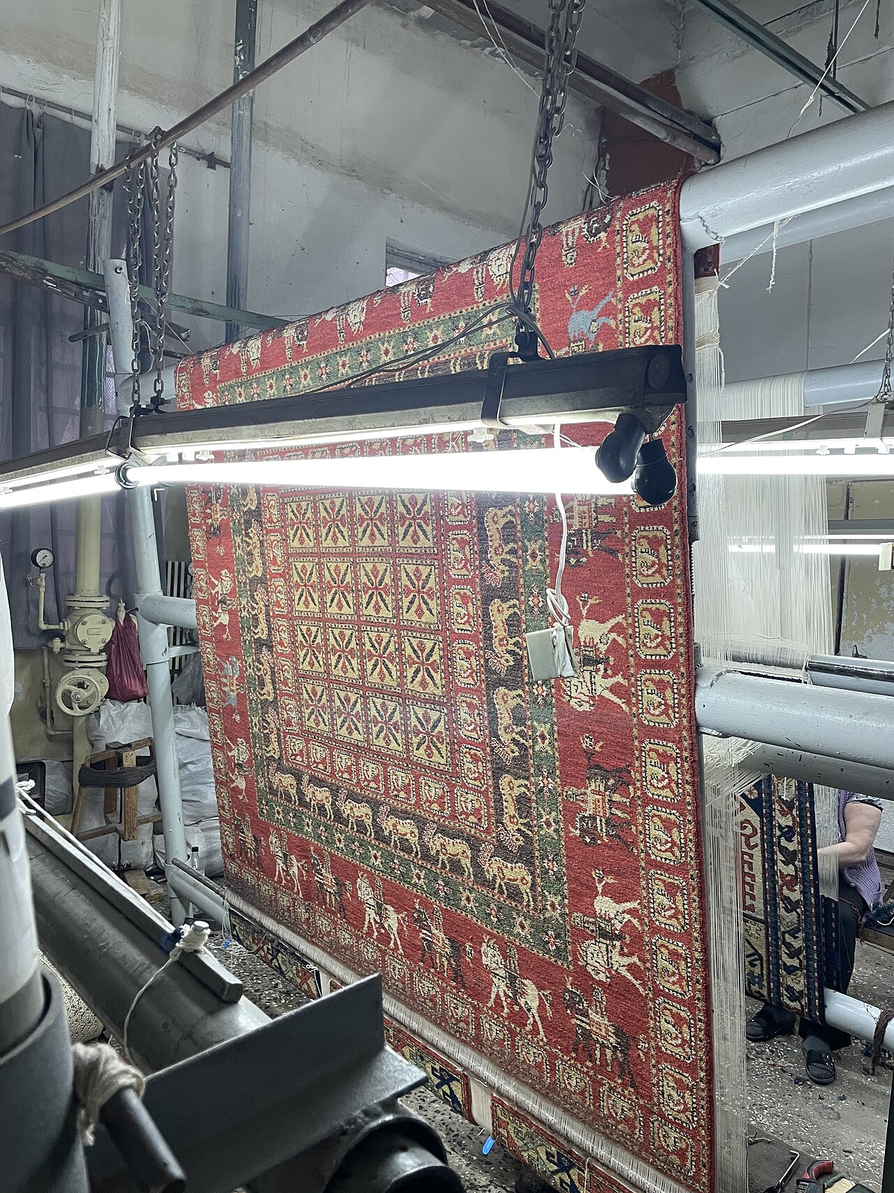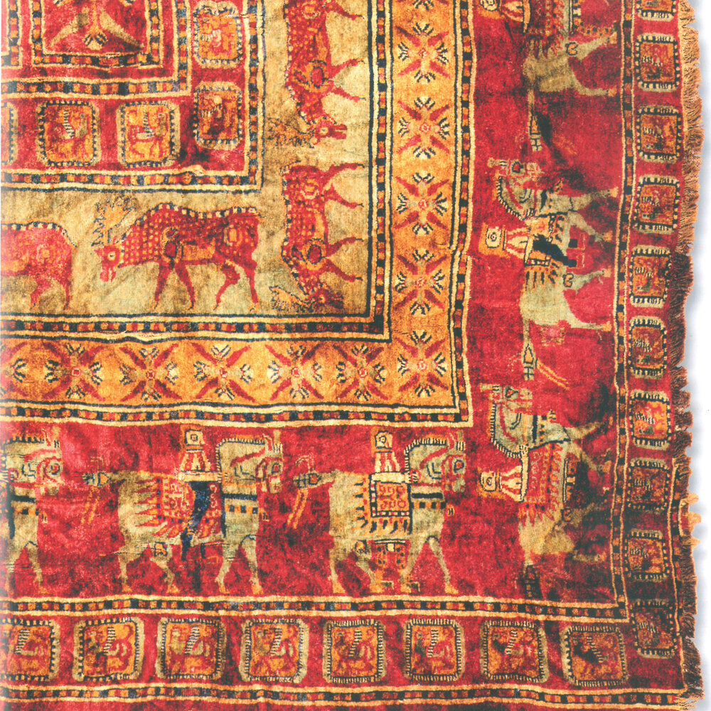 Образец пазырыкского ковра, вручную воспроизведённый армянской компанией Megerian Carpet.