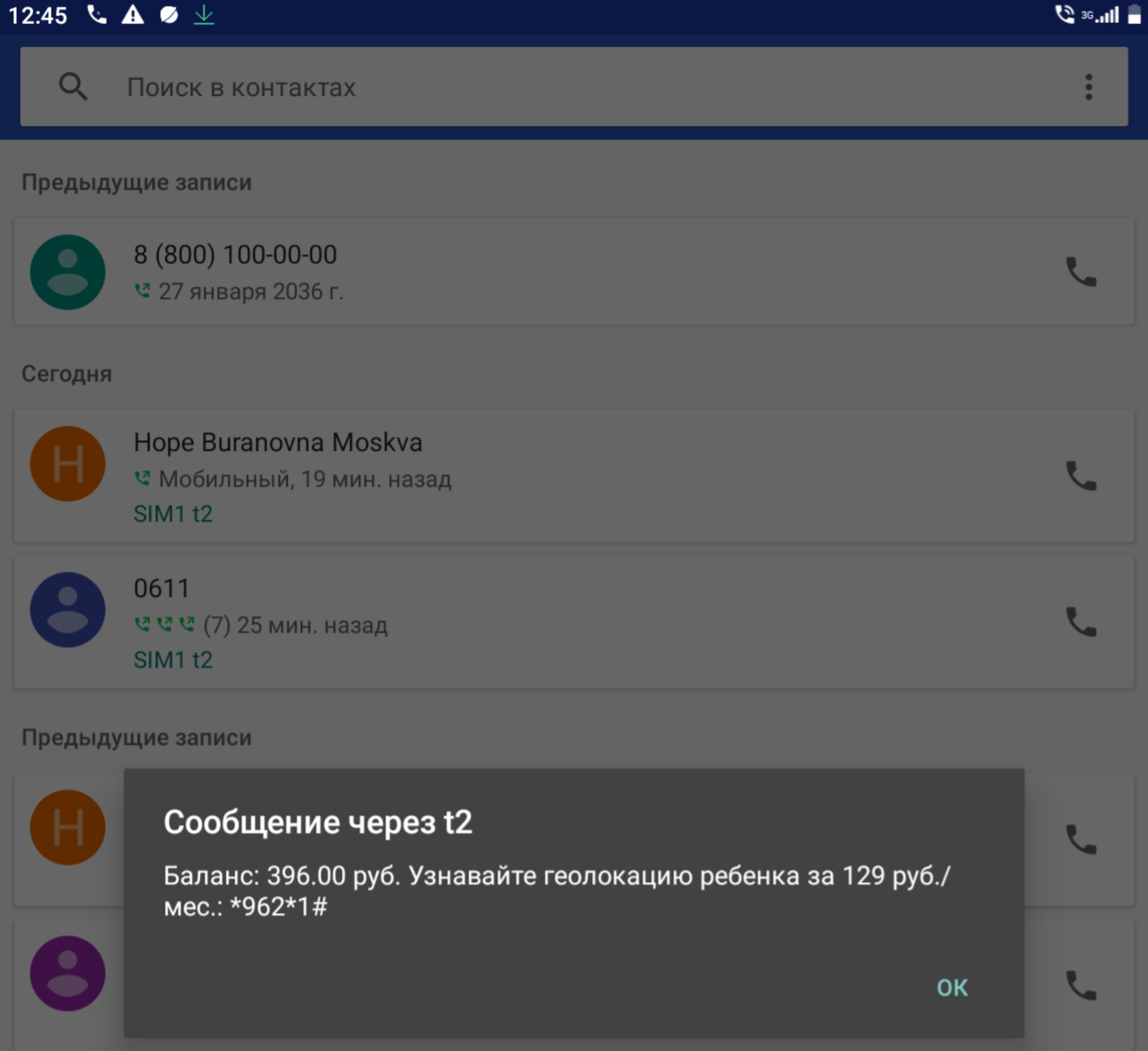 Узнавайте геолокацию ребёнка за 129 руб. Время 12:45.