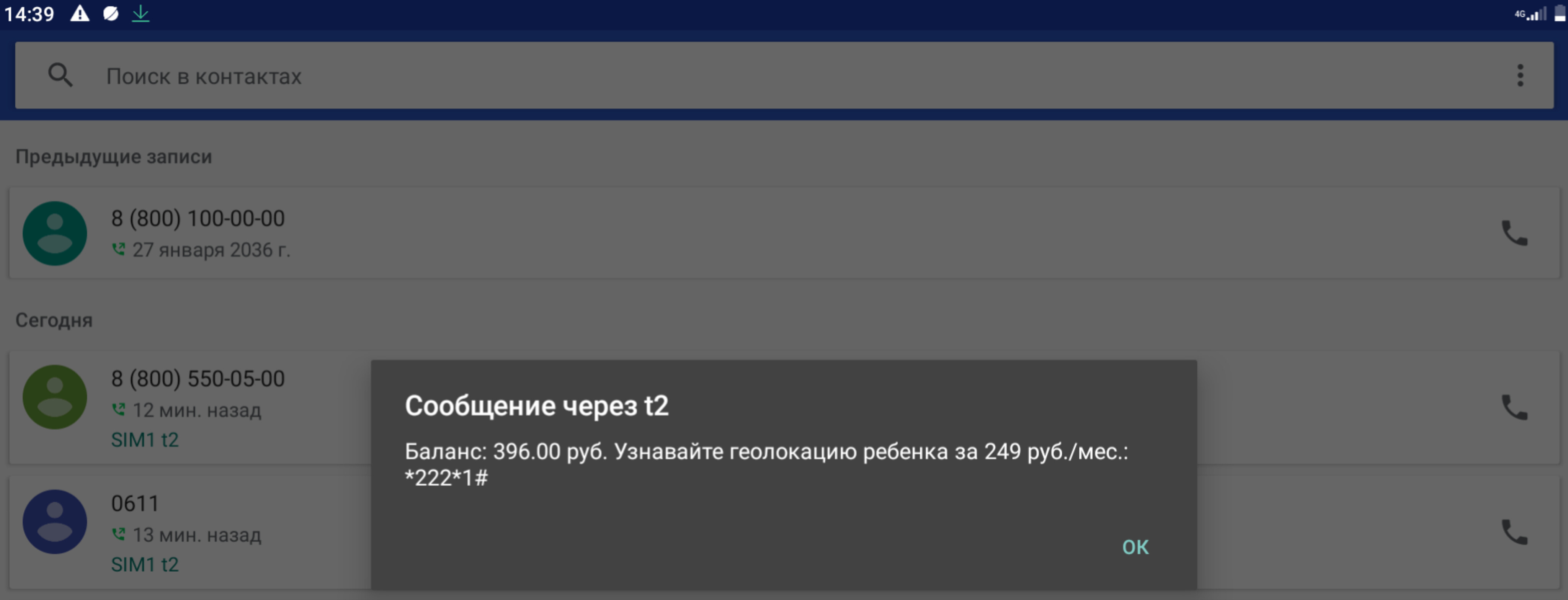 Узнавайте геолокацию ребёнка за 249 руб. Время 14:39.